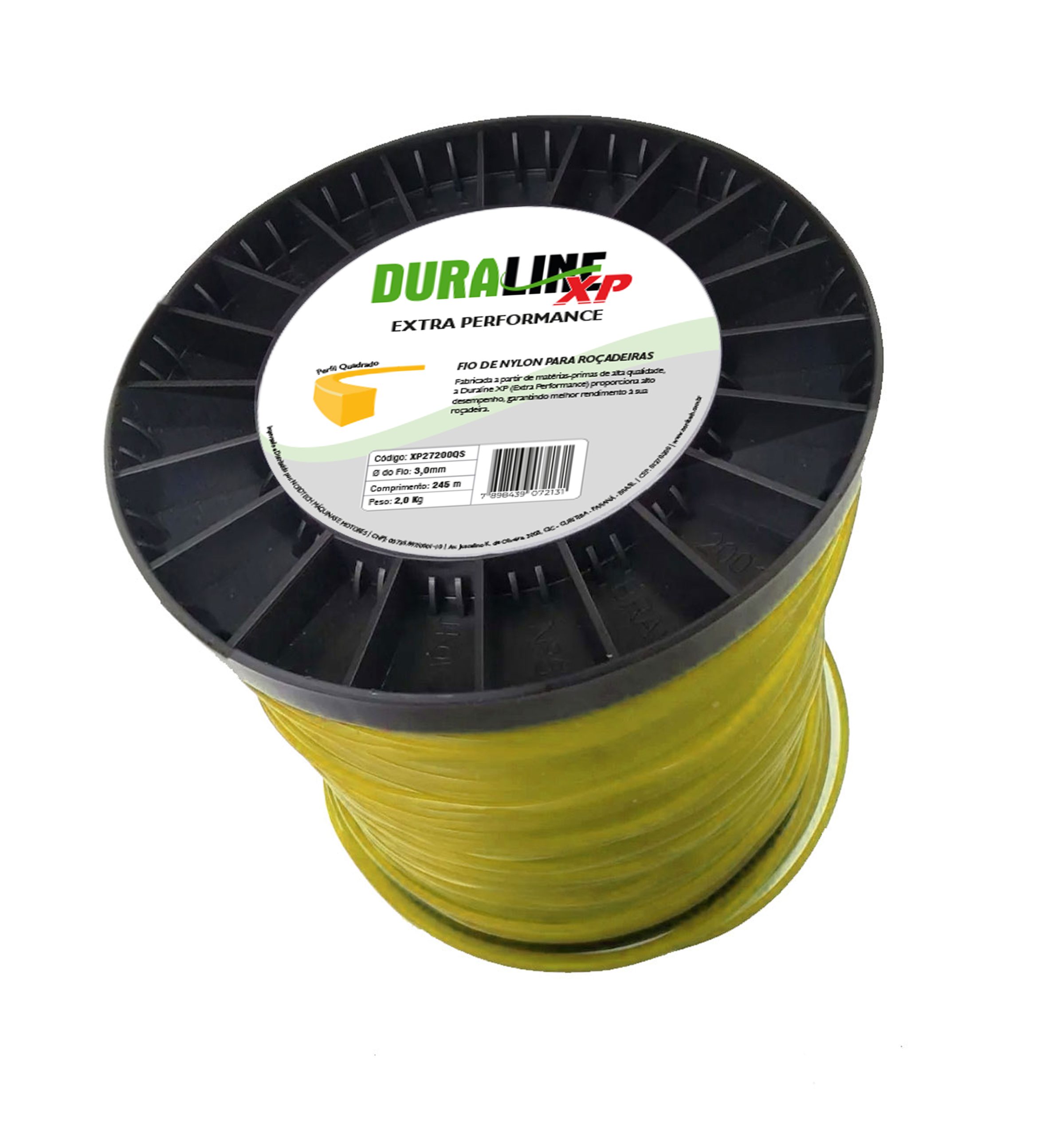 Bobina com 290 metros de Fio de Nylon Redondo de 2,7 mm. O perfil de fio redondo proporciona corte preciso, facilitando o trabalho e aumentando rendimento das roçadeiras. Possui uma aerodinâmica que diminui o arraste e o atrito do ar, aliviando o esforço do motor da roçadeira, aumentando a vida útil dos equipamentos e diminuindo o custo de operação.
